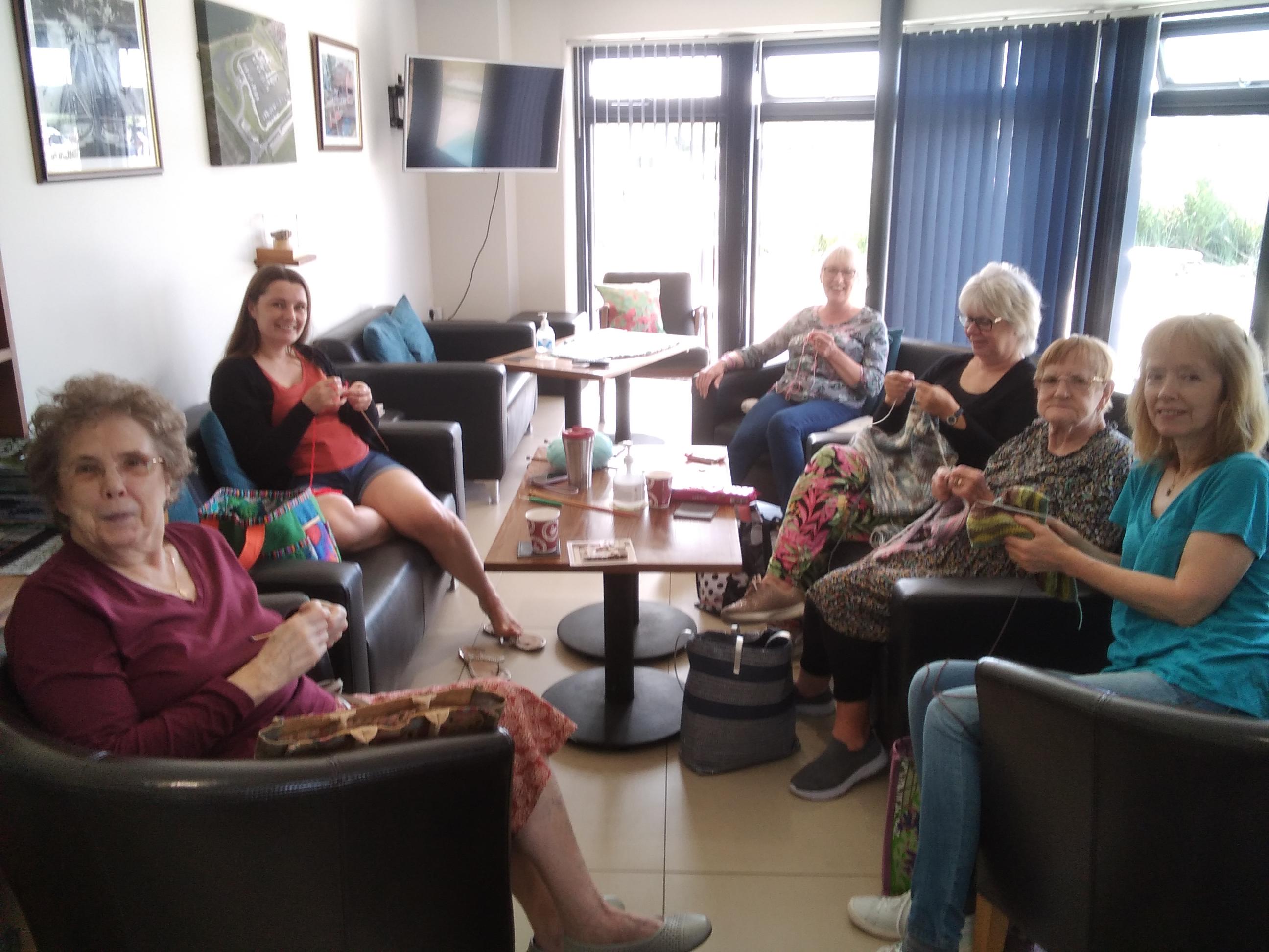 I reported back to Shane that we had a while to wait. He was filling up with water and I thought I might as well wait at the marina and take my knitting as wait at the boat. I was slightly nervous about crashing an established knitting group and disturbing their conversation, but if they were all interested in boats and knitting, they must surely be friendly! And of course I was indeed warmly welcomed and invited to pull up a chair. The woman next to me (if you read this, I am so sorry I have forgotten your name, as you did introduce yourself) made warm and enthusiastic conversation and informed me of a spectacular display of knitted structures in nearby Cosby. Amazing water themed designs are on show until September 4th. I was soon introduced to the Scottish member of the knitting group, from Glasgow, who had heard of Fochabers and often goes to Cullen. In the short time we had covered boat travels, blogs, canal television programmes, cancer treatment, rescuing an inflatable pool, the meaning of blether/blather and even a little about knitting – though I did only knit a couple of rows. It was a delight to meet them and they gave permission to be blogged. They don’t meet tomorrow but if I am here again I will certainly drop in – 10.00 till 12.00 on a Saturday – and bring my 20p for milk ( not needed today) – Thanks for extending the needles of friendship and allowing me to take a photo.