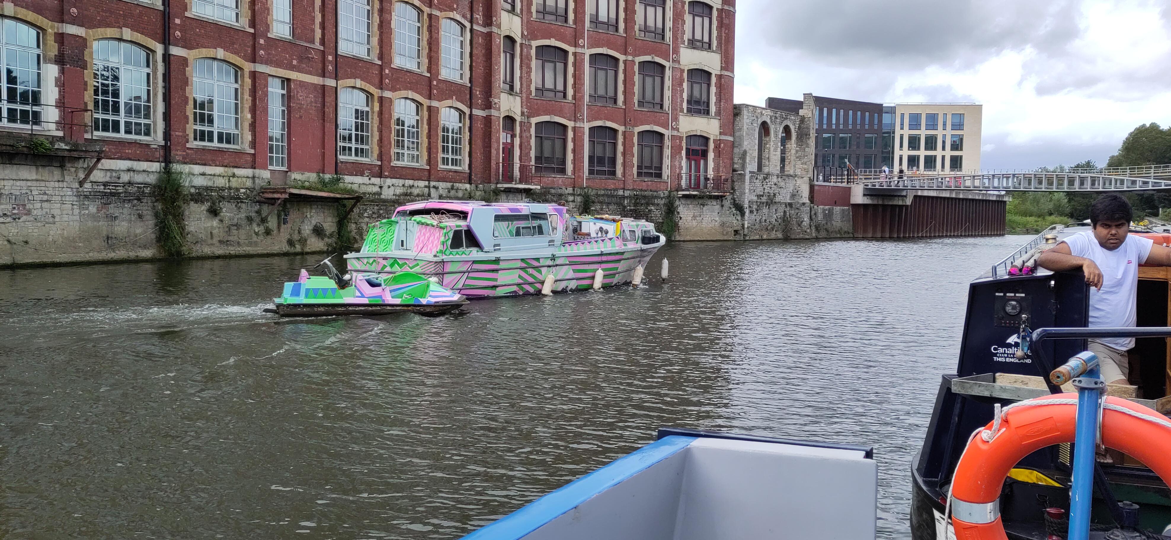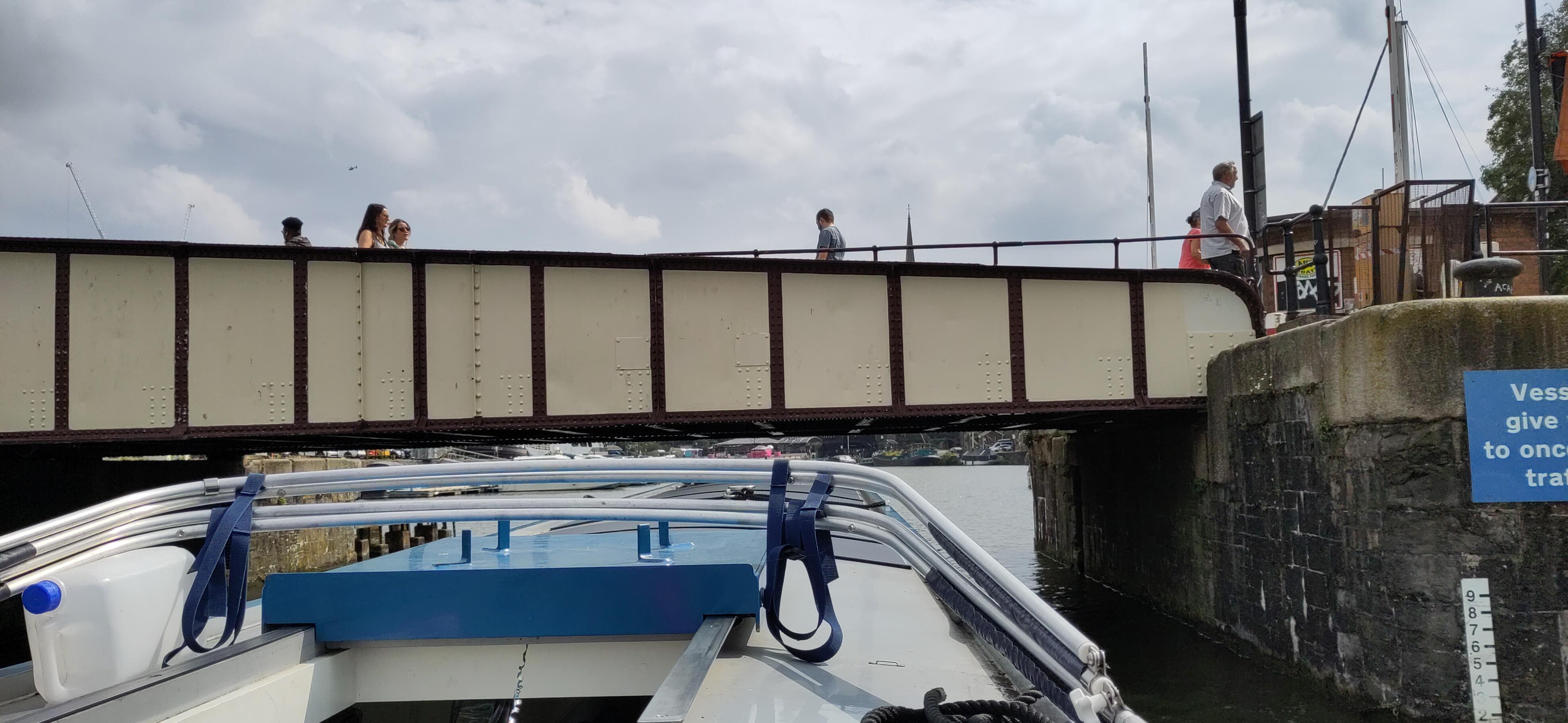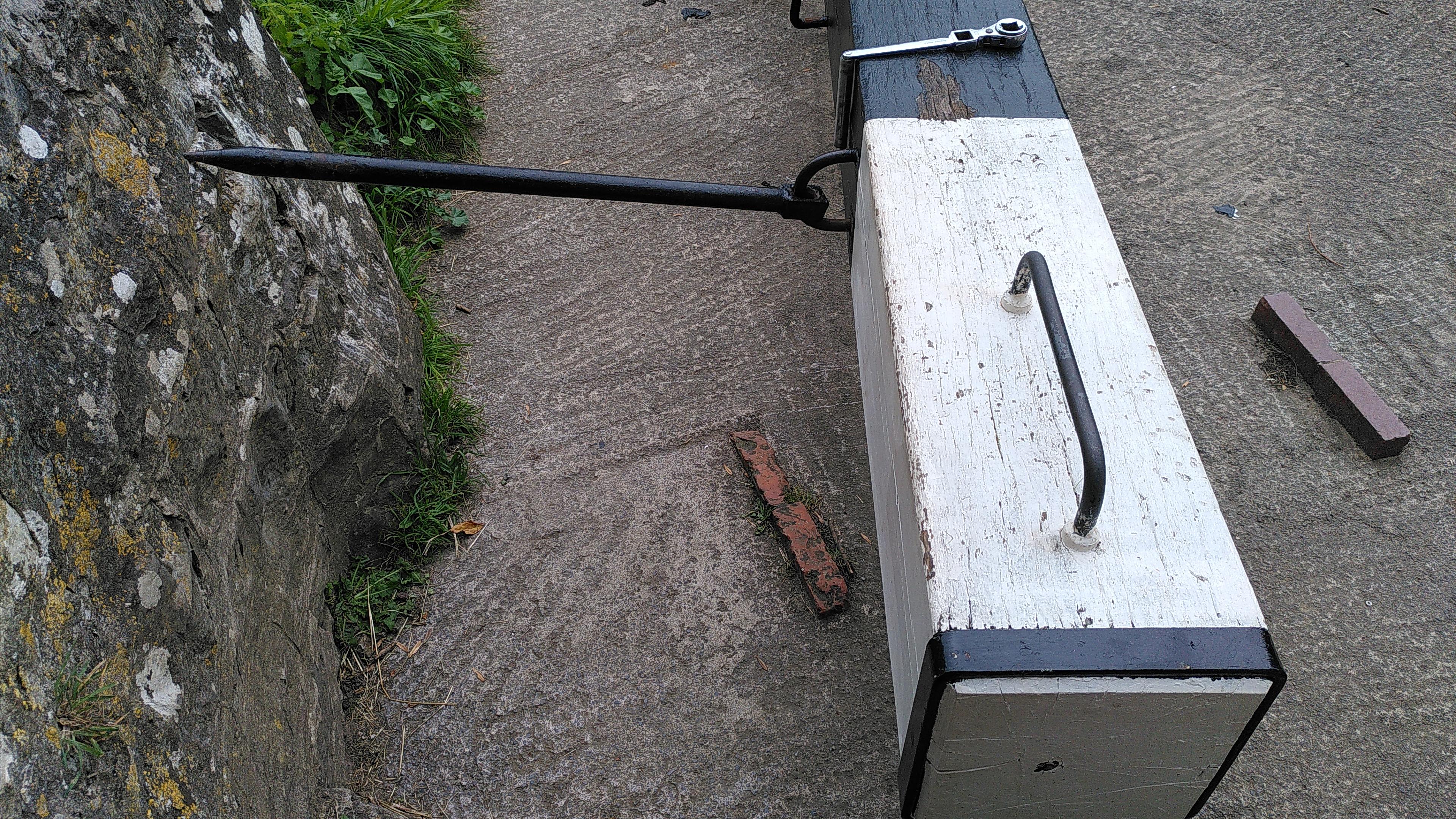 When we reached the next lock, I moored up as boats were already in it. I remembered that this one had had very heavy gates at the other end that were hard to open. We had had to have three people last time and using the gate at the side with a stone wall to push your feet against, rather than the turf and mud on the other side, to get it started was essential. I saw Shane was already with a young man at that side. Both boats were loan boaters. I went to help the narrowboater on the other side, who had been warned this was a very difficult lock to open, while Shane and the young man took the other. Predictably their side cracked open first and they held it while we got our side open. They returned to their boats to drive out and the young guy wished us luck when it was our turn. We were hoping that another boat would come but there was no sign. So we had to go it alone. I brought the boat to the side of the lock and roped up when it was nearly full and went to help Shane with the gate on the stone wall side. Shane had had an idea to use a metal spike that these gates had to prop them open, and place it against the wall to stop the gate slipping back when we eased pushing in any way. It helped though was a dangerous looking item and there was still some serious push back from the gate. As we pushed it would drop down the wall a little but as the wall was wider further down it allowed us to hold our position, as we adjusted our positions for the next push.