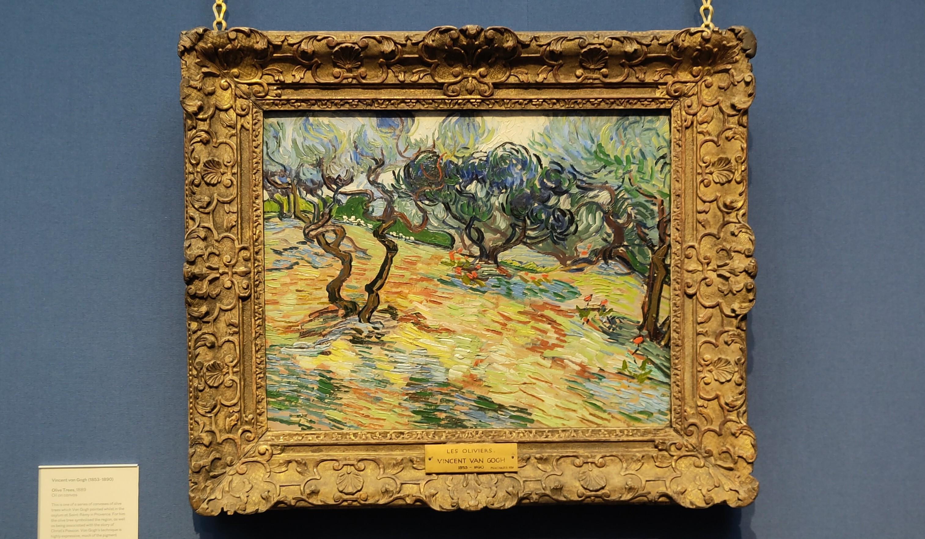 Inside the National gallery I began by going round the main exhibition I had seen with Shane last month. At the end of the hall, Sandra and I went upstairs, not downstairs so I got some variety and on the way back through the main room we took in some of the side spaces, one dedicated to Impressionists and post impressionists, e.g. Degas, Van Gogh, Gauguin, Cezanne. If you are going to admire trees on a wet day, admiring these paintings was a good way to do it. These trees transport you to warmer climes.