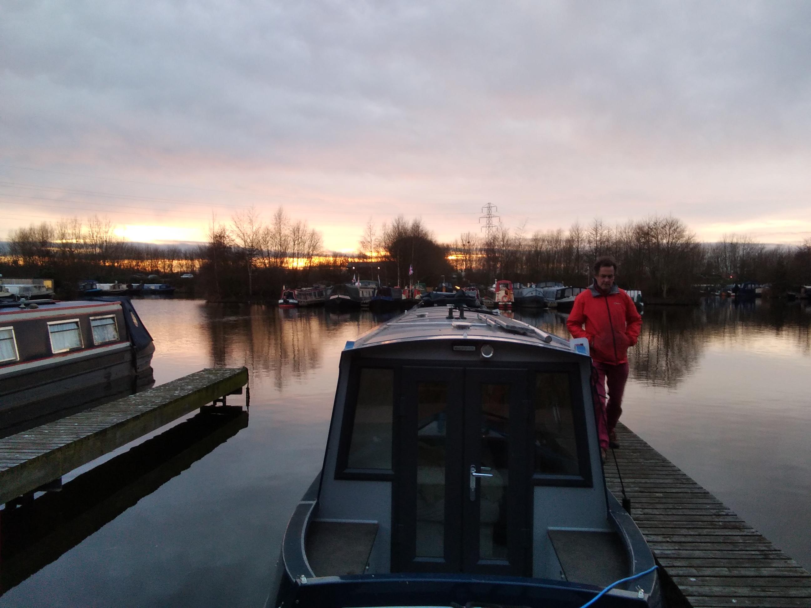 When we were going into the marina we were turning left, and Shane was following a sign that said to keep left, when another boat appeared coming towards us, so he had to try and turn across it to pass on the right. What we didn’t realise was that at that place the wind was tunnelling through and turning at that point meant the wind caught the bow of the boat so Bartimaeus just kept turning which put us side on to the wind only increasing the wind’s control. I went down the front in case fending off the many moored boats was needed. We didn’t hit any boats and I wasn’t required. Coming back I stepped on the edge of the step/ shoe box and it tipped up so I fell in a crumpled heap between shelves and the bed. I thought I had jiggered my back again, but slowly I managed to disentangle myself so I think it will just be more bruises and at least I wasn’t driving! Meanwhile the boat was turning it’s own merry way 180°. While this was going on the boat behind managed to go past and turn fine, and the boat approaching us found a window of opportunity to slip past. Shane then had to carry on turning and approach wider to continue on our way without difficulty.