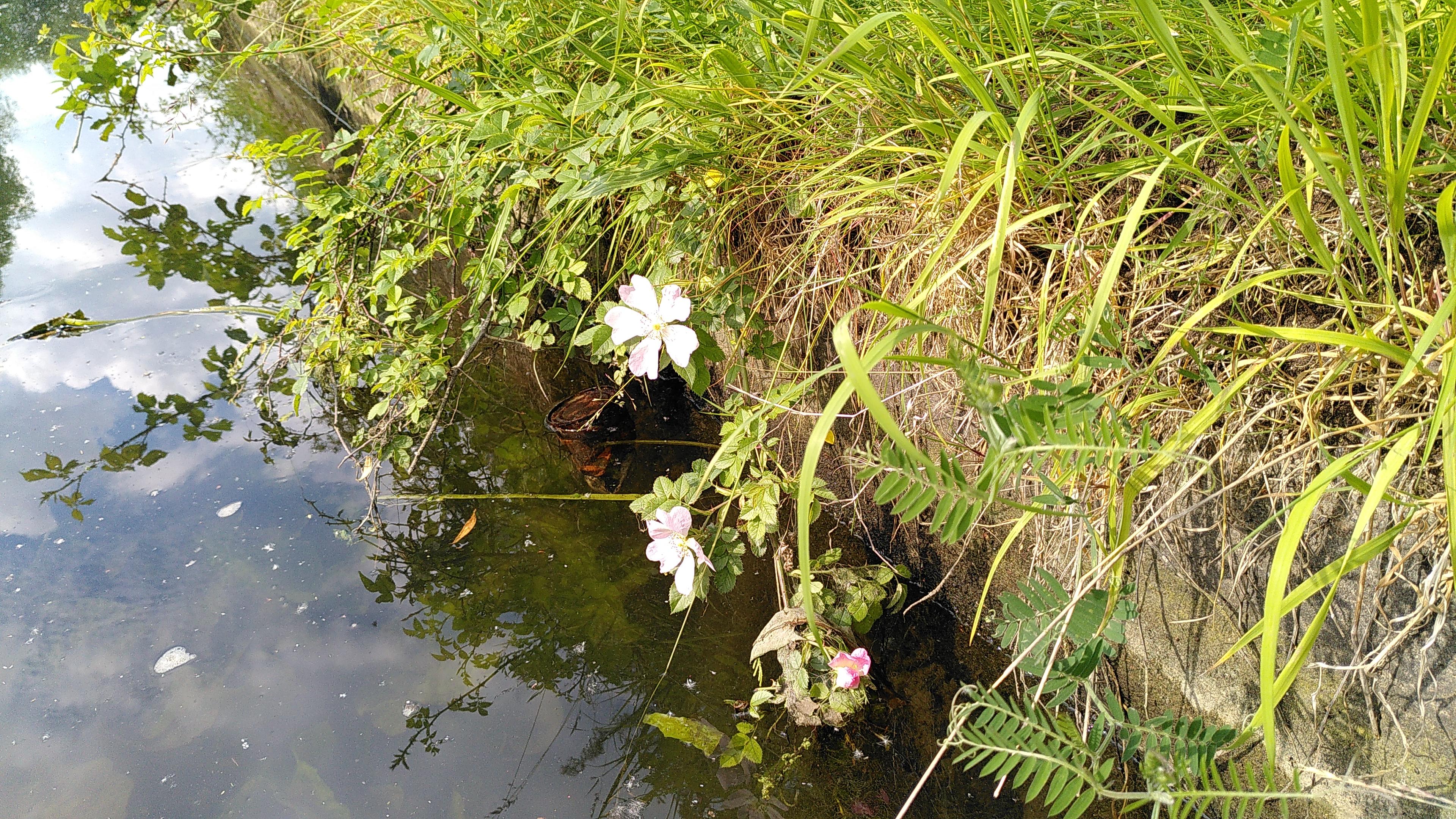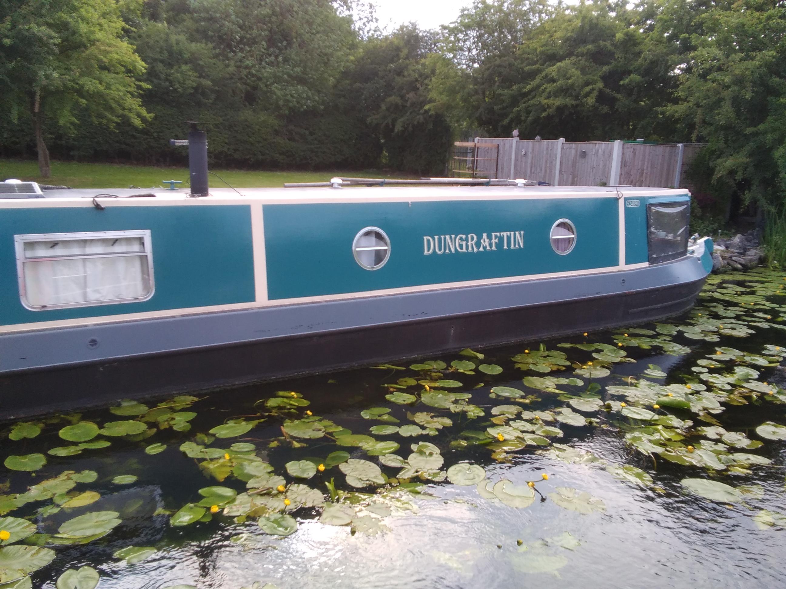 Between locks and driving I have been trying to crack on with the knitting, and was frustrated to have to rip back when I spotted a mistake. The baby it is for was born yesterday so I feel a pressure to complete. I don’t think this requires grafting like my last project, the socks with wild flower colours in it. In a permanent mooring back at the start of the canal is a boat with a name we discussed when we saw it before. It looks like another retirement dream, but we mused whether it could also be an ex knitter or ex plastic surgeon. I can tell it hasn’t move for a while as the bright yellow water lilies, of which there are very many here, have grown around it.