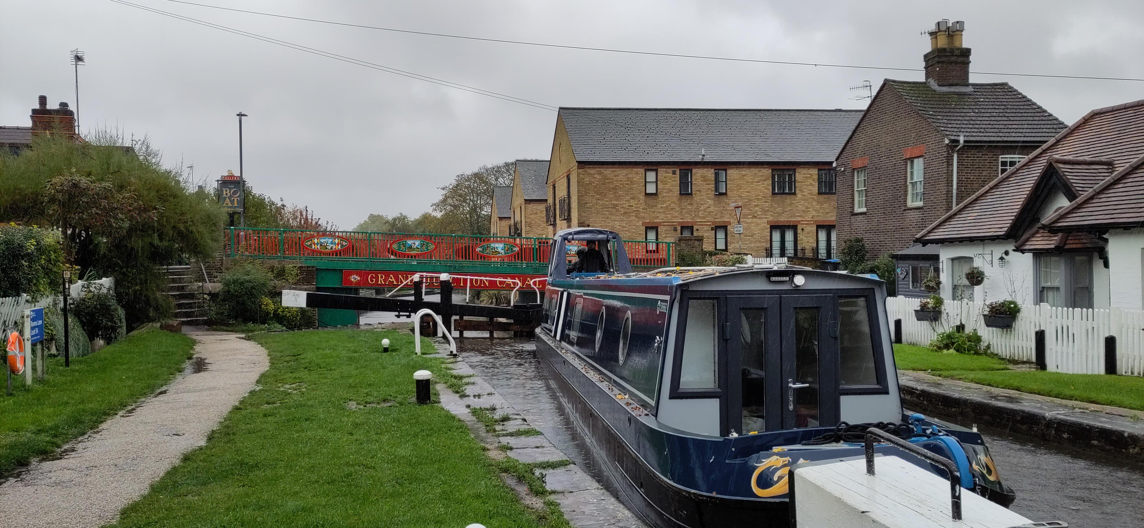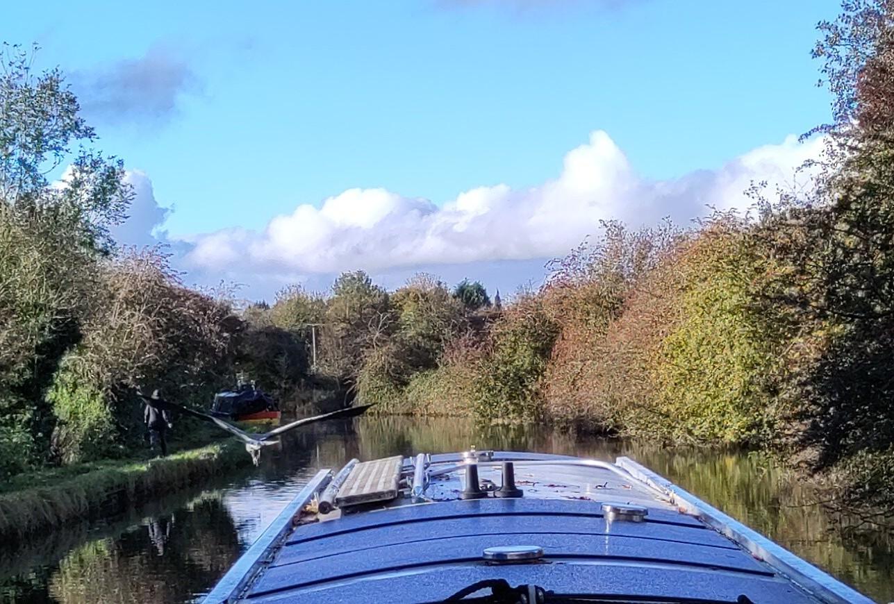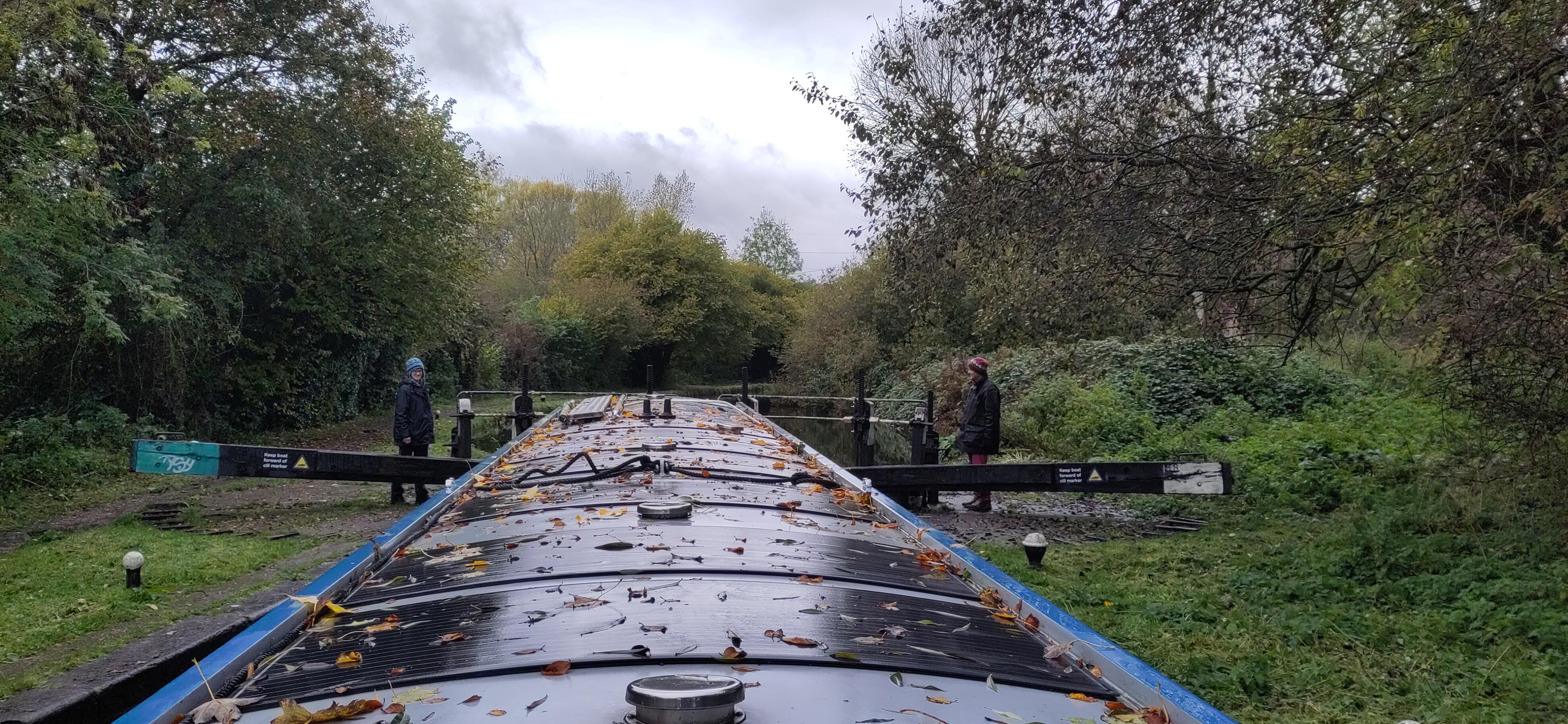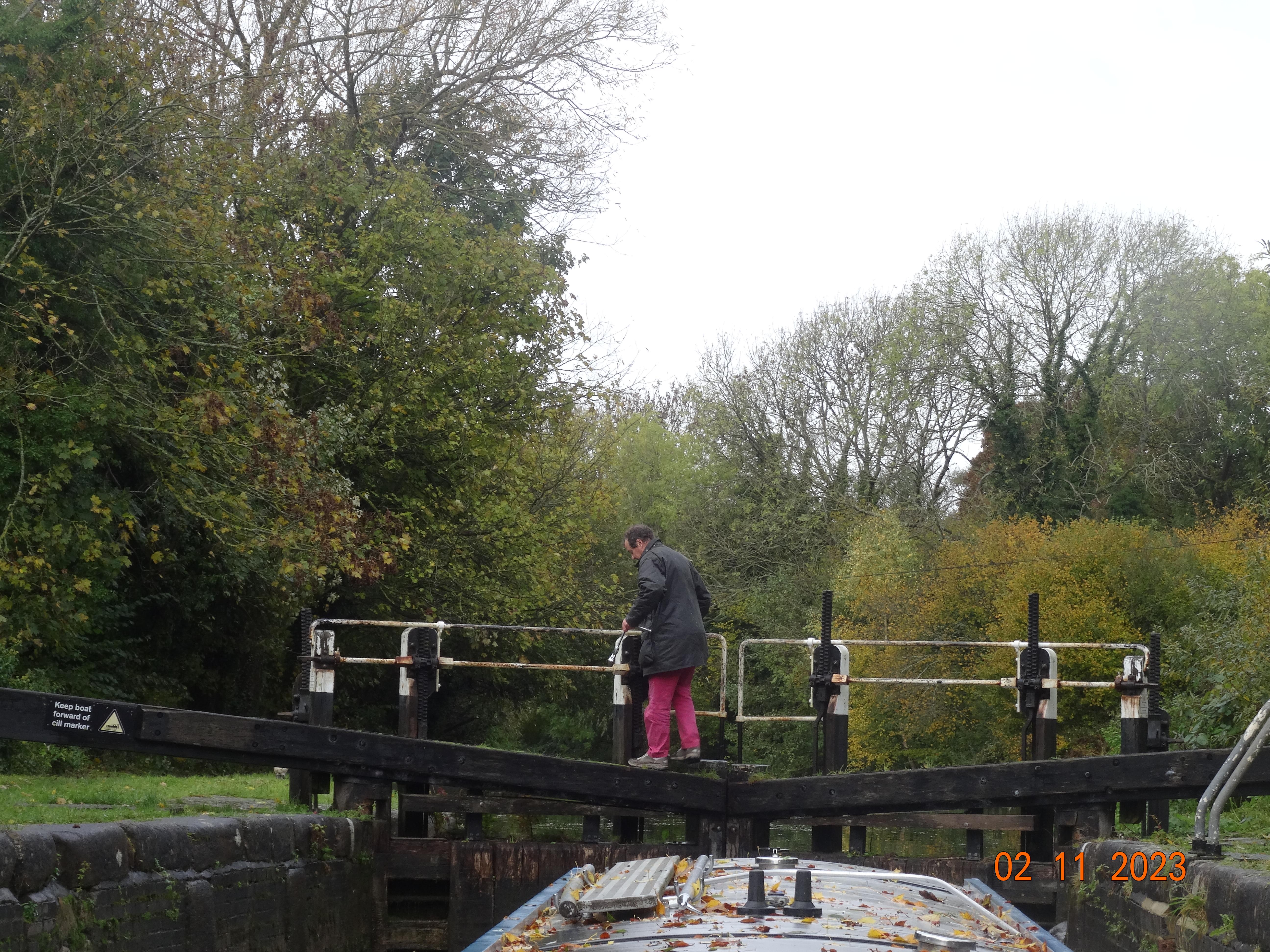 When I got back he had finished getting water, having got in slightly earlier as the third boat had given up waiting. We were now behind the two that had filled slowly at the water. It seemed they took an easy pace generally and we caught up with them as they entered the next lock. I went up to help. One woman was on a boat and two men were chatting, one of the boat drivers and a CRT man, but only one side had been operated. After a few exchanges with the woman, I established it was okay to work the other side. The men seemed oblivious and enjoying their chat. The two boaters were on first name terms and seemed to be travelling together. The man was chatty and friendly with me, trying to decide on the most helpful gate arrangements and arranging that the CRT man could help shut his side after he had driven off to save me walking round. He laughed when I pointed out his rope was still tied to the bollard when he was setting off. I untied his rope and he said you always make mistakes when you get chatting, as you are distracted and lose your routine. Too true.