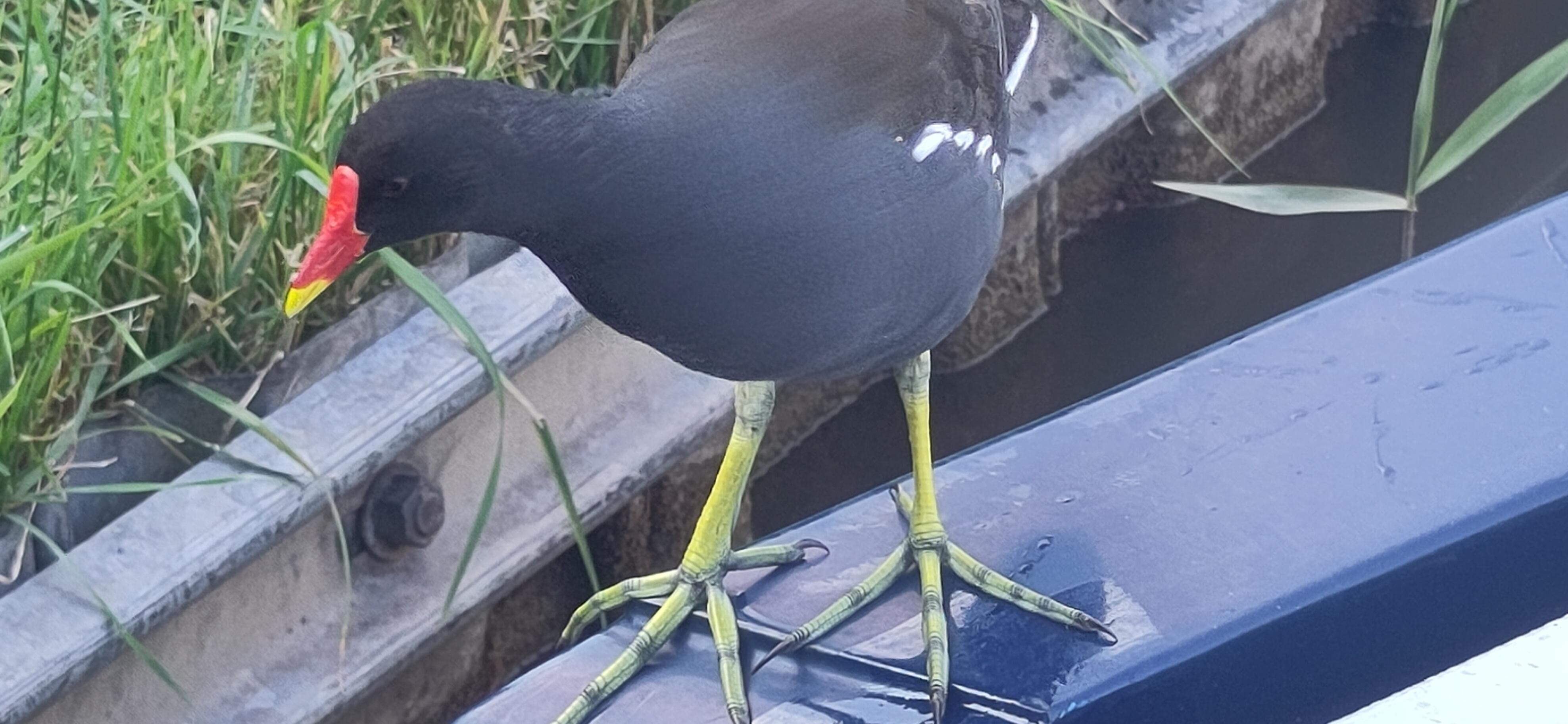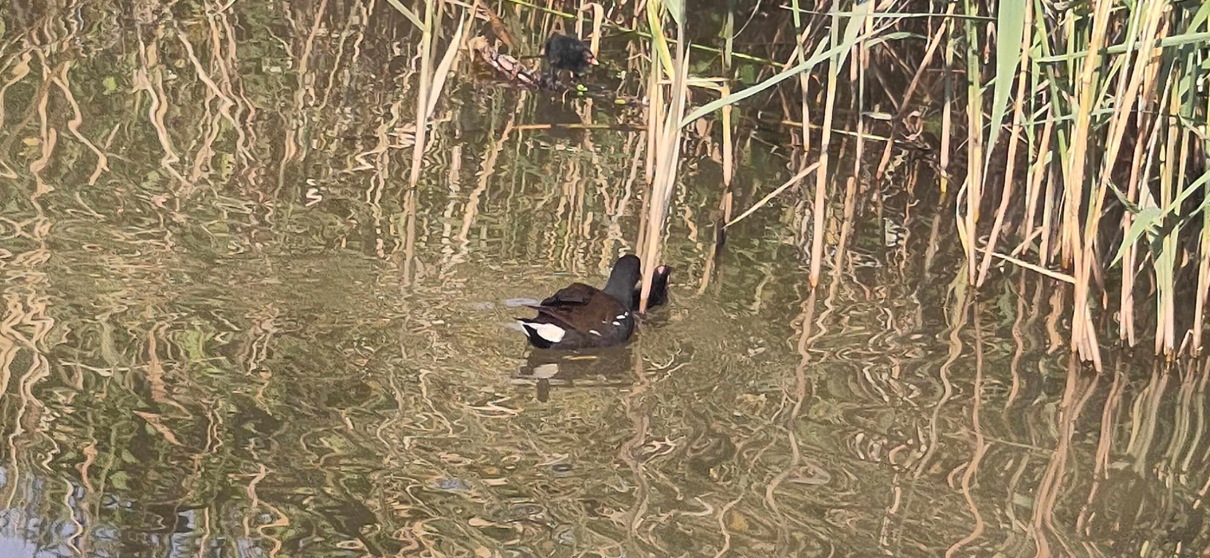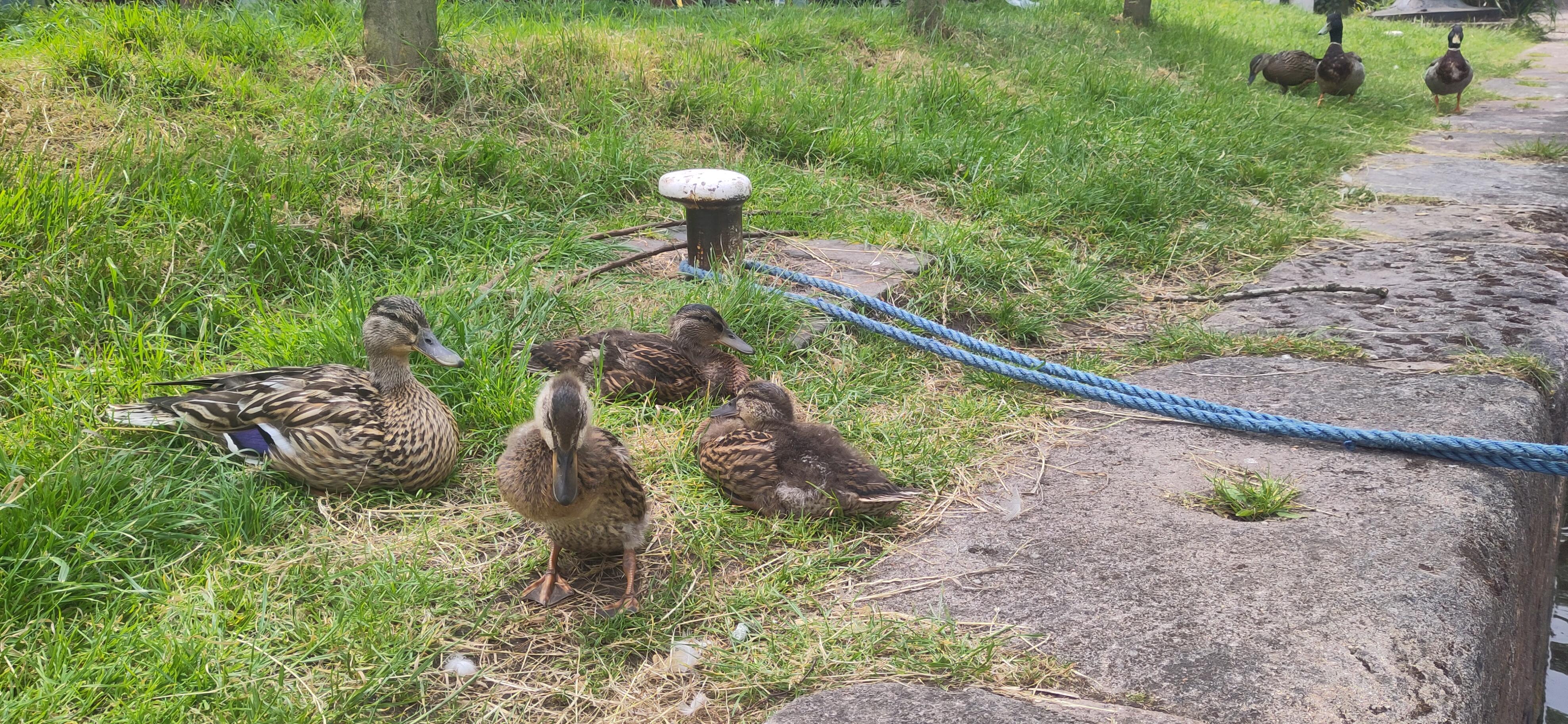 We got a quick look at some webbed feet in action when a group of goslings on the bank, strangely, decided they were safer in the water than the bank as we drove past, gradually letting themselves into the water, gripping the grassy edge before plopping down. It was fun to watch them all go in.